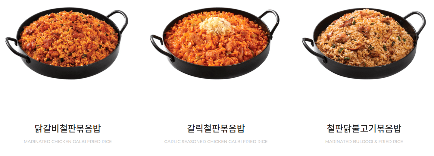 닭갈비 철판 볶음밥 1인분 ₩7,000 2인분 ₩14,000 3인분 ₩21,000