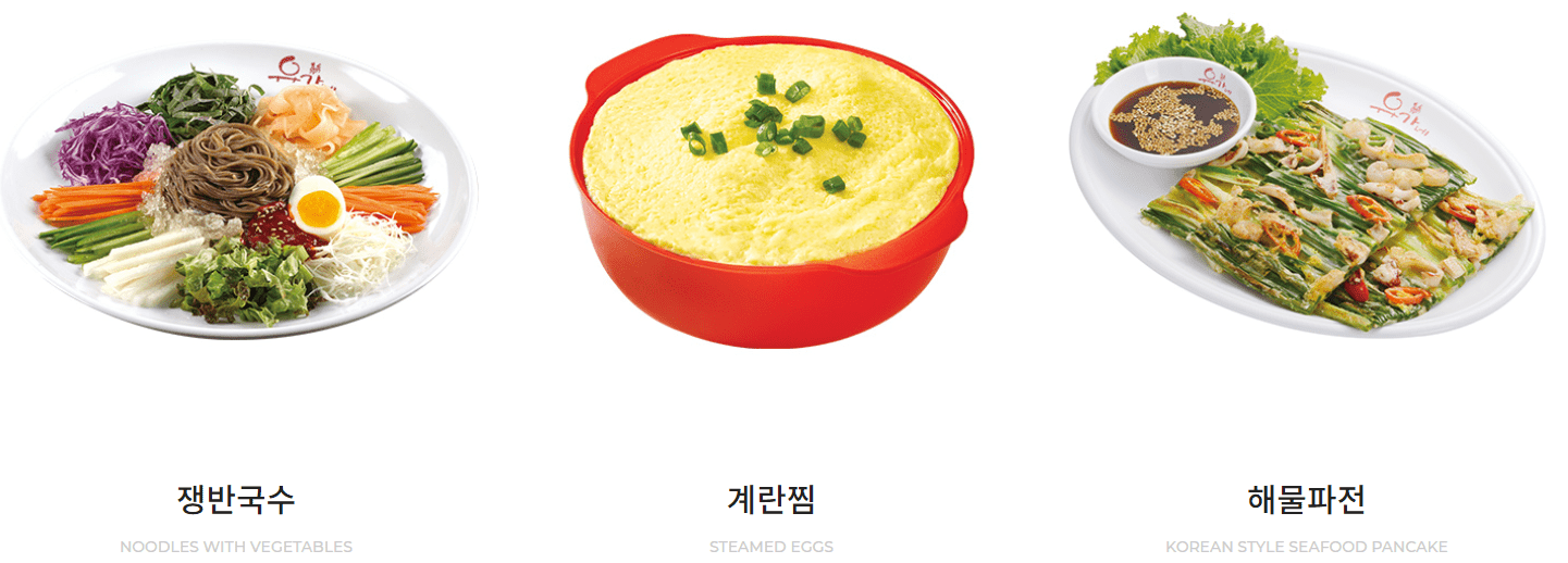 닭고기를 먹기 좋게 썰어 유가네만의 불고기 양념으로 숙성시킨 부드러운 철판 닭불고기와 밥을 맛있게 볶은 맵지 않아 외국인 및 어린이에게 인기만점.